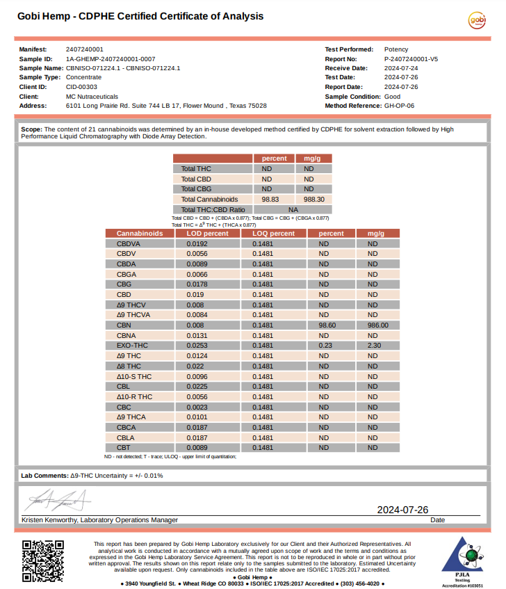 Below are a list of the different CBN Isolate strains we carry in-stock.