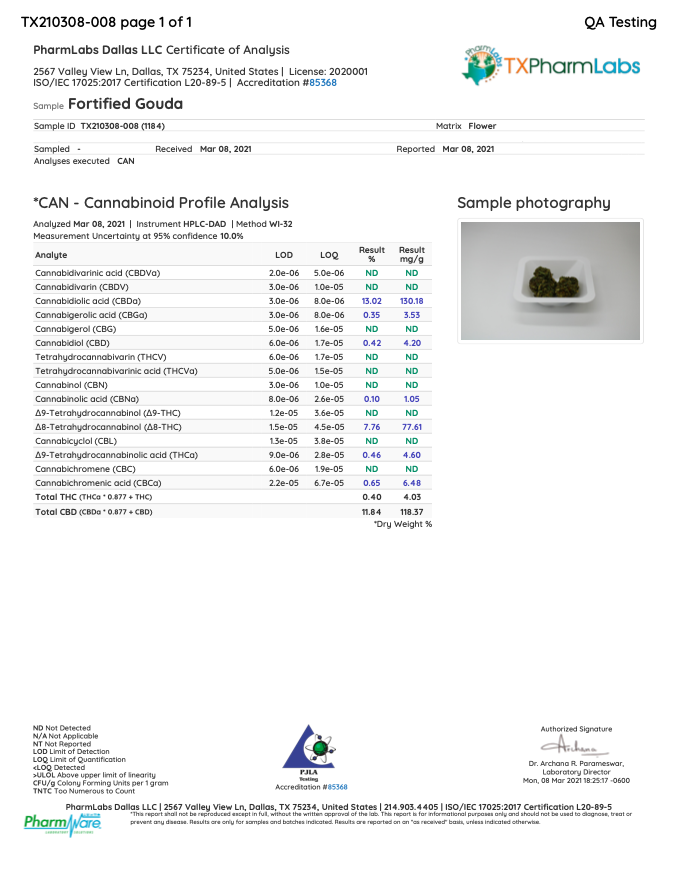 Gouda is grown indoors or in a light-assisted greenhouse. We carefully track strain origins to provide a consistent look, smooth taste, and aromatic smell. This strain is made with a solvent-free method so that you get all of the benefits without the harmful chemicals.
